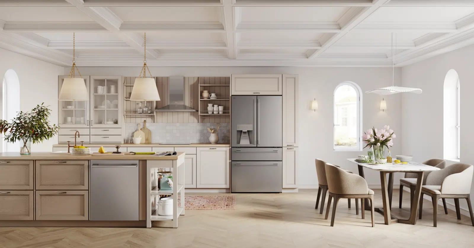 LG rozszerza swoją ofertę o nową zmywarkę Flush Depth, która idealnie pasuje do standardowych szafek. Wyposażona w technologie QuadWash™ Pro i Dynamic Heat Dry™, zmywarka ta zapewnia wysoką wydajność oraz szybkie cykle mycia i suszenia. Funkcja AutoVentDry™ automatycznie uchyla drzwi po zakończeniu cyklu, co dodatkowo zwiększa efektywność suszenia.