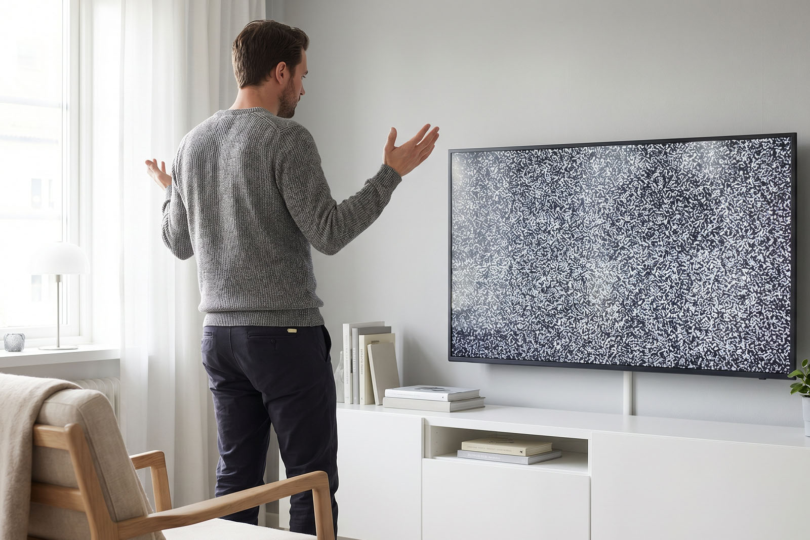 Rozwiązanie: Przełącz źródło sygnału pilotem – przycisk „Source” lub „Input”. Wybierz HDMI 1, HDMI 2, HDMI 3 (zależnie, gdzie podłączony dekoder). TV zapamiętuje ostatnie źródło – jeśli odłączyłeś dekoder i podłączyłeś do innego HDMI, musisz przełączyć ręcznie.